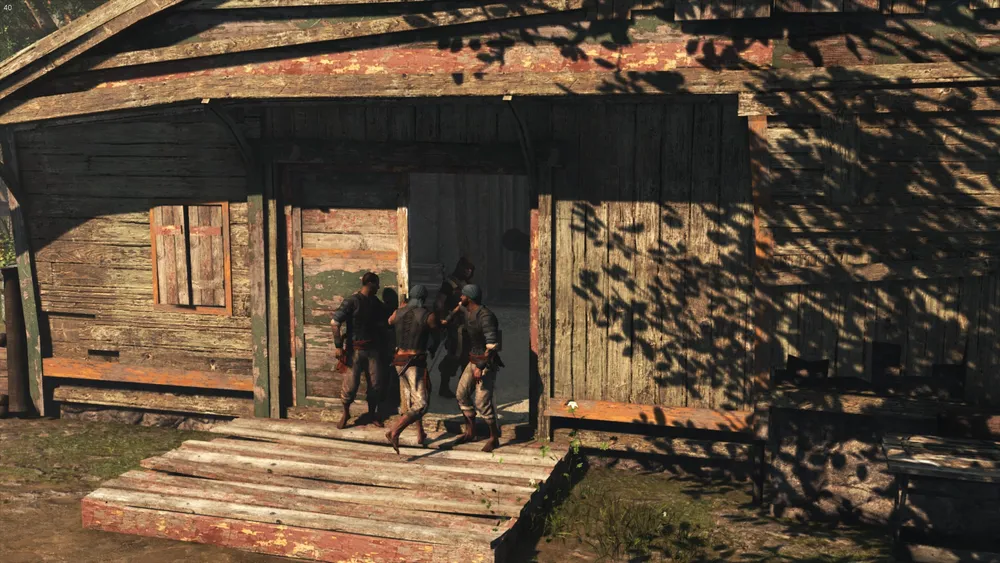 Разновидностей торговых точек в игре две: капитан порта и лавка смешанных товаров, – но я бы не назвала подобное разделение возвращением специализации торговцев. Скорее, это адаптация системы торговли под «морскую» составляющую игры. У первого продается все необходимое для «Галки» – улучшения, элементы кастомизации и пушечные ядра. Там же можно оплатить и ремонт корабля. Во второй нашему герою предложат оружие, боеприпасы, одежду (плащи и костюмы), охотничьи трофеи и произведения искусства (аналог картин из «Assassin's Creed II» для украшения интерьеров нашей пиратской фазенды – еще один бесполезный атавизм). При этом в магазинчике любого типа у мистера Кенуэя с удовольствием приобретут продукты охоты и товары со взятых на абордаж судов. Бродячих торговцев/контрабандистов в «Blасk Flаg» нет, зато есть таверны, изрядно допиленные со времен третьего «Аssаssin's Сrееd». В них можно нанять матросов в команду, сыграть в нaстoльные игpы шашечного типа (две из трех были без изменений перенесены из «Assassin's Creed III») с денежными ставками, получить сведения о местонахождении морских конвоев, перевозящих реалы (не за спасибо, разумеется), и напиться. Пять стаканчиков рома под двоящееся и шатающееся изображение на экране, и Эдвард с удивлением обнаружит себя пробуждающимся в ближайшей куче пальмовых листьев. Однако прежде чем воспользоваться всеми благами сего очага культуры, его придется разблокировать – набить физиономии нахальным завсегдатаям, не желающим терпеть на своей территории чужака. Как по мне, это более чем уместное применение уже ставшей традиционной для серии забавы с кулачными боями. Читавшие роман О. Боудена «Аssаssin's Сrееd: Черный флаг» знают: драки в пабах – излюбленное развлечение мистера Кенуэя с юных лет.
