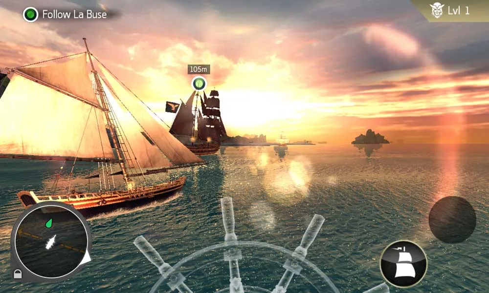 Абордаж – редкое развлечение в «Assassin’s Creed III» – в четвертой части не просто превратился в обязательный этап любого морского сражения, но и стал многоходовым. Прежде чем лезть в рукопашную, моряков и бочки с порохом на палубе вражеской посудины можно при желании собственноручно проредить из фальконета (дают сделать до пяти выстрелов). Чем круче захватываемый корабль, тем сложнее условие успешного абордажа. В случае со шхуной достаточно истребить пятерых матросов, а для победы над фрегатом придется выпилить пятнадцать членов команды и в дополнение к этому взорвать парочку пороховых бочек, расправиться с капитаном или сорвать с грот-мачты флаг противника. Распорядиться поверженным судном можно также по-разному: пустить на починку «Галки», отправить во флот Кенуэя (о нем ниже) или же затопить, предварительно предложив экипажу присоединиться к пиратам. Последнее позволяет понизить уровень известности нашего брига – хорошо знакомая со времен второго «Ассасина» механика, адаптированная под «морской» геймплей. Другой способ сделать нашу посудину инкогнито – занести коррумпированному чиновнику в любом порту (переработанная фича с глашатаями из трилогии про Эцио). Если же уровень известности достигнет критического значения, «Галку» начнут преследовать корабли охотников за головами. Их, кстати, тоже можно взять на абордаж.