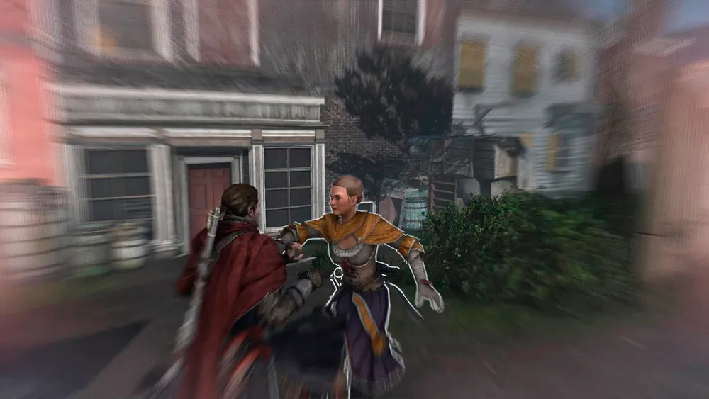 Механику захвата вражеских баз, точнее одной из трех разновидностей таковых, присутствовавших в «Изгое», тоже доработали с учетом фракционной принадлежности главного героя, взяв за основу захват башен Борджиа из «Assassin's Creed: Братство Крови». Как и ранее, для победы требуется устранить местного босса и уничтожить символ власти противоположной фракции над данной территорией – флаг (частенько добавляется и третье условие: кого-то спасти, что-то взорвать и т.п.). Однако бандитские логова (так теперь именуются бюро ассасинов) отличаются от аванпостов тамплиеров тем, что далеко не все охраняющие их бойцы действуют в открытую. Многие прячутся в укромных местах, включая босса (главаря). Вот тут-то и пригождаются описанные выше навыки Шэя, помогающие ему выслеживать тех, кто привык нападать внезапно со спины. Если его (то есть ваш) стелс окажется круче их стелса, мастер Кормак не только получит дополнительный денежный бонус за скрытность, но и избавит себя от необходимости гоняться по округе за удирающим главарем (поймать и ушатать его в рукопашной – та еще морока), попутно агря на себя всех защитников логова, и явных, и затаившихся. (Другая разновидность баз – морские и речные форты – ничего интересного из себя не представляет, ибо чуть менее чем полностью копирует «Assassin's Creed IV: Black Flag». Ну а захват поселений мало чем отличается от захвата бандитских логов – все то же самое, но только без фишки с прячущимися врагами и командиром.)