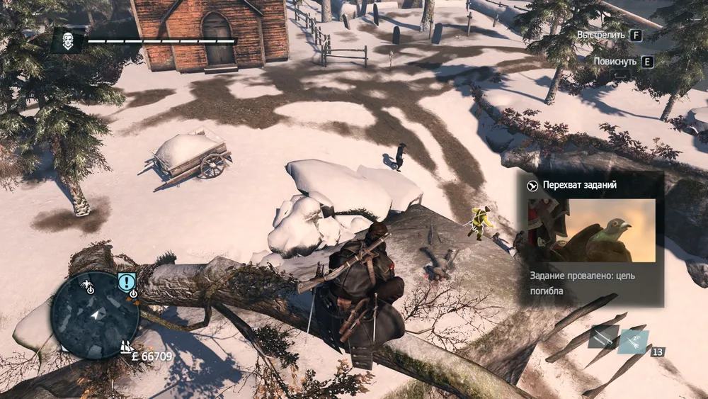 «Перехват заданий» – это своего рода антипод «Контрактов на убийство», бытовавших в серии со времен «Assassin's Creed II». Объявив ассасинам войну, Шэй всячески старается помешать реализации их планов, в том числе и по устранению опасных для Братства персон. Если помните, имена жертв герои-ассасины из предыдущих игр получали посредством голубиной почты, поэтому именно с поимки почтового голубя начинается любой перехват в «Изгое». Отлов пернатого посыльного обставлен как простенькая однокнопочная QTE сцена: нажмете не ту клавишу – и птичка улетит, но не насовсем. Следующий этап перехвата – обнаружение цели и уничтожение всех подосланных к ней убийц за пару-тройку минут. Вот в таком необычном виде были реализованы типичные для серии задания на время. Коли герой успеет до обнуления таймера, то получит небольшой денежный бонус сверх оговоренной суммы. Не успеет – у него все равно сохранится шанс успешно завершить миссию, разобравшись с оставшимися убийцами непосредственно в момент их нападения. Опростоволосится и тут – задание будет вроде бы провалено (даже соответствующее сообщение высветится на экране), но вы и оглянуться не успеете, как оно заново активируется, будто и не было ничего, будто цель и не погибала вовсе. А жаль. Реальная возможность бесповоротно провалить миссию смотрелась бы круче, имхо, хотя и шла бы в разрез с концепцией симуляции Анимуса, не предполагающей двоякого исхода, то есть нелинейности (впрочем, спустя несколько игр последняя, как и шанс провалить побочное задание, в серии все же появилась – «Assassin's Creed Одиссея»).