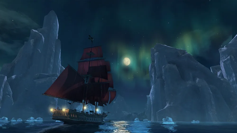 Принцип организации игрового мира в «Rogue» – это гибрид идей, прежде уже встречавшихся в третьем и четвертом «Ассасинах», с добавлением одной новой, довольно занятной детали. Он [мир] состоит из трех отдельных крупных локаций, одна из которых сугубо городская (Нью-Йорк), другая – преимущественно морская (Северная Атлантика, уменьшенный аналог Карибов), а третья сочетает в себе и водные просторы, и небольшие поселения, и лесные территории, напоминающие Фронтир (Речная долина). Различаются перечисленные локации не только соотношением воды и суши, но и климатически, чего раньше в играх серии не наблюдалось. При этом климатические особенности служат не только декорациями, но и в определенных пределах влияют на игровой процесс. Наиболее интересна с этой точки зрения Северная Атлантика (залив Святого Лаврентия), куда разработчики «завезли» ледяную воду и льды. В результате купание там, в отличие от двух других локаций, перестало быть безопасным занятием. Стоит Шэю оказаться за бортом, и вскоре на экране появляется виньетка из морозных узоров, а его здоровье начинает убывать. Визуальные сигналы, символизирующие замерзание, дополняются аудиальными – сопением и кряхтением дрожащего протагониста (позднее, спустя несколько частей, та же механика ледяной воды появится в Assassin's Creed Вальгалла). Льды, в свою очередь, выполняют функцию и преград, препятствующих свободному перемещению героя и его судна, и источника ресурсов. Айсберги, например, можно разносить на кусочки из корабельных орудий, и иногда с них дропаются лут и коллекционные предметы. Особо массивные айсберги и замерзшие проливы перекрывают доступ в некоторые участки карты, попасть в которые невозможно без специального ледокольного тарана или разрывных ядер, получаемых строго по сюжету. В мини-игру с гарпунной рыбалкой добавили возможность уворачиваться от ледяных глыб, встречающихся на пути следования шлюпки. Если ею пренебречь, столкновение с льдиной закончится обрывом каната, и морского зверя придется гарпунить по-новой. Сказались климатические особенности Северной Атлантики и на эстетическом очаровании, присущем данной локации. В ней приятно не только играть, но и просто быть. Особенно ночью, когда зеленоватые отсветы северного сияния преображают окружающий пейзаж, делая его еще красивее. И все это холодное великолепие наполняется лиричной атмосферной музыкой, напоминающей композиции к Skyrim.