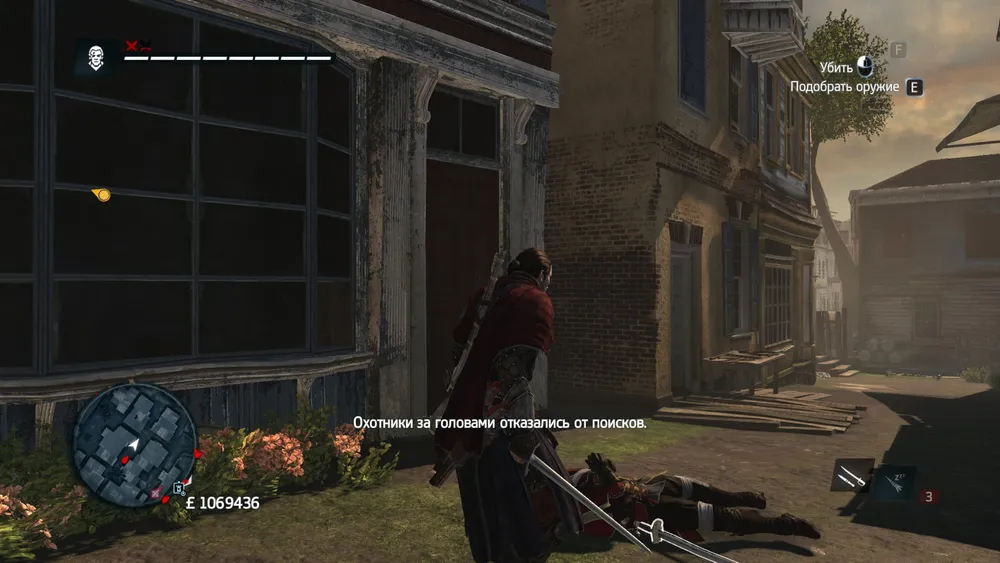 С учетом нетипичной для игровой серии фракционной принадлежности протагониста была переосмыслена и механика изменения уровня известности на суше, которую превратили в своего рода «наказание» для игроков, убивающих мирных неписей. В остальных частях (за исключением «Одиссеи»), напомню, за уничтожение гражданских полагалась принудительная десинхронизация – аналог смерти с последующей загрузкой из ближайшего чек-поинта. Оно и понятно, Кредо ассасинов однозначно запрещает придавать смерти невиновных. В «Изгое» же герой, точнее игрок-NPC киллер, карается иначе. Вместо заскриптованной и неотвратимой перезагрузки игра предлагает ему самому разбираться с последствиями в виде появляющихся почти моментально из-за ближайшего угла охотников за головами – крайне неудобных врагов, неизменно блокирующих любые рукопашные атаки с последующей контратакой. Ушатать их довольно сложно, но все же можно, если использовать дистанционное оружие. Коли победа останется за Шэем, игра откажется от дальнейшего преследования вашего убийцы-тамплиера. Однако иконки повышенной известности при этом не пропадкт, и при повторении «убийственной» практики по его душу явится уже не парочка охотников, а три и больше, выжить в схватке с которыми станет еще сложнее.