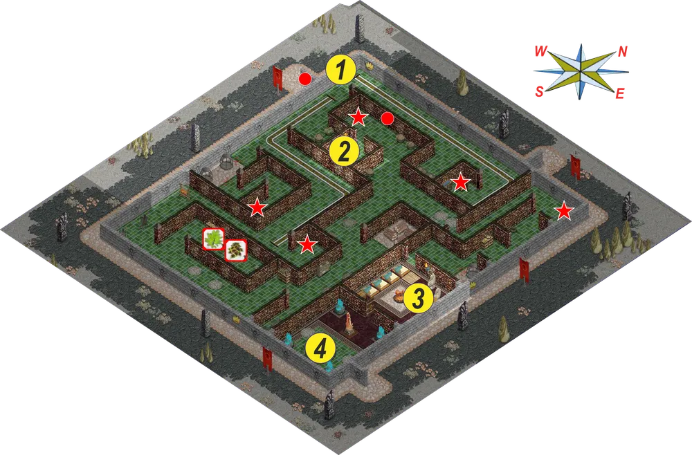 1 – секретная дверь. 2 – рычаг. 3 – казарма. 4 – кристалл.