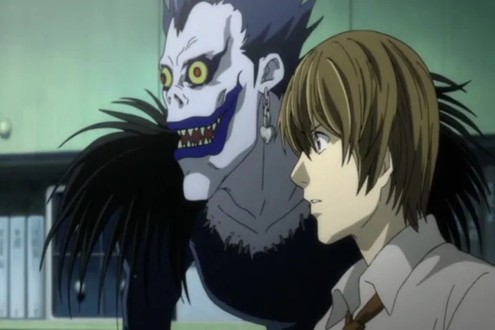 Из всех персонажей, мне больше понравился Рюк. Это, вполне не глупый, бог Смерти, который всё аниме комментирует действия Райто смехом. Рюк тоже является хитрецом, как и Кира, т.к. он додумался спереть чужую Тетрадь и сбросить её в мир людей, сохранив свою. Моё мнение, Рюк – самый комедийный персонаж аниме, ведь только у него имеются комедийные сцены в этом серъёзном детективе, ставка в котором - жизнь.