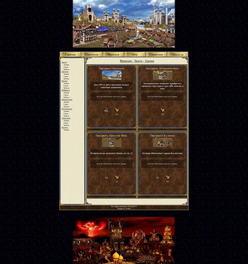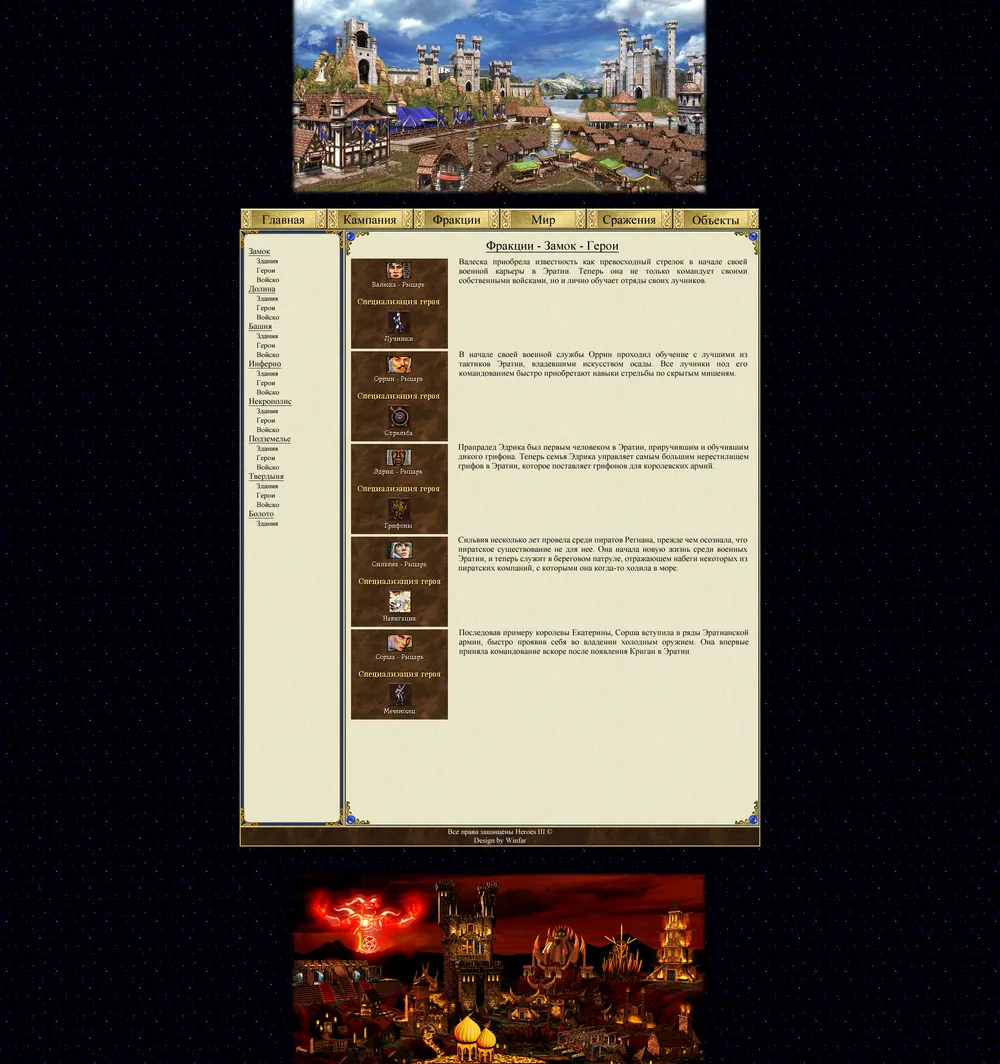Привет всем. Заинтересовался веб-дизайном и решил попробовать свои силы. Герои 3 - первая игра в которую я поиграл. Вот, как я представил дизайн возможного сайта.