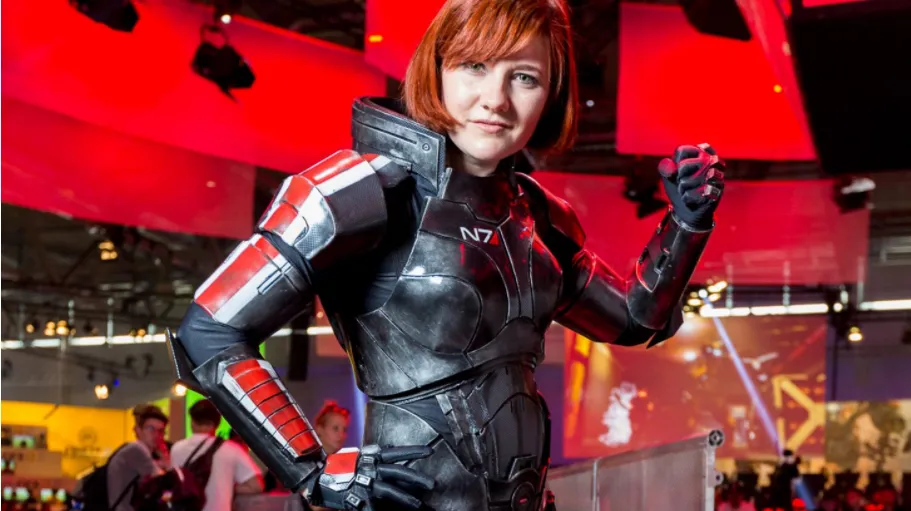 Прекрасная рыженькая мадам в костюме N7 с умопомрачительной проработкой деталей.