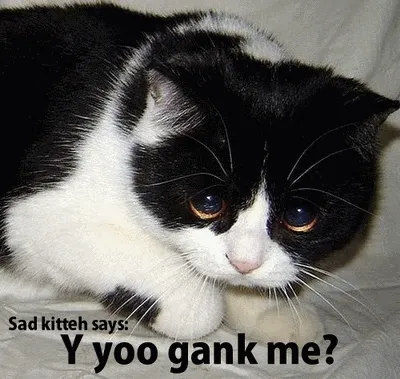 Но не стоит путать ганк, с чем-либо еще. К примеру, если вы спокойно щипаете травку на берегах Westfall'а(WoW), а беспечный орк 80 уровня в спешке «задел» вас своей героической кувалдой – это не ганк.