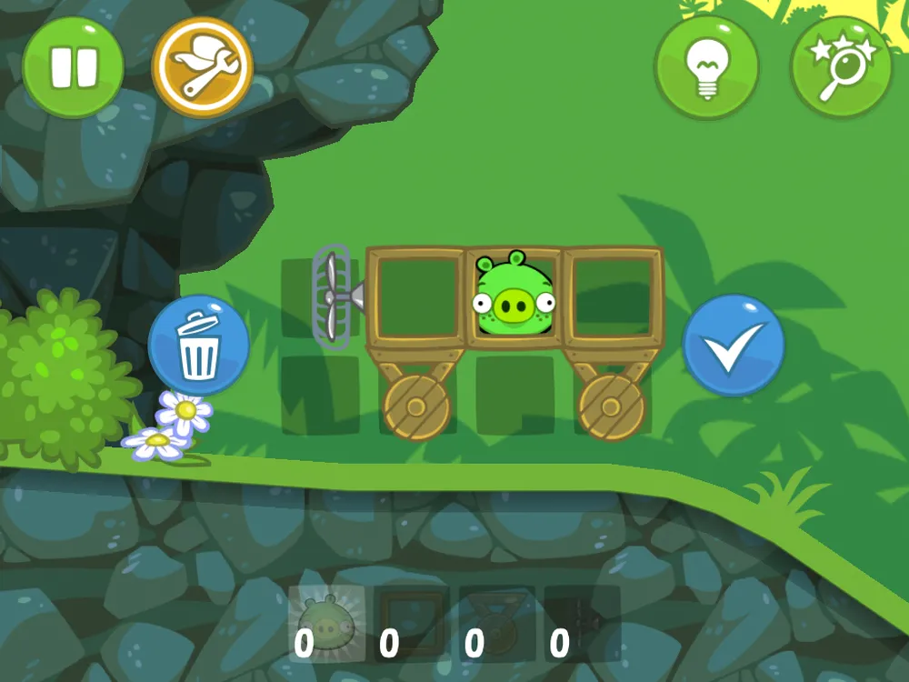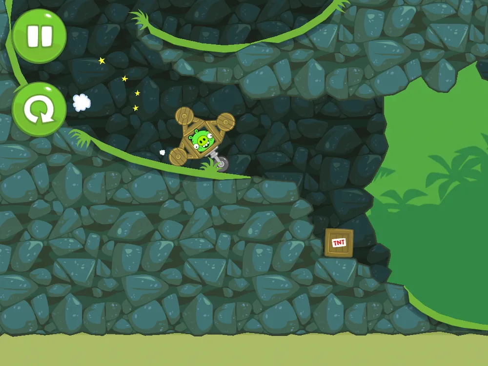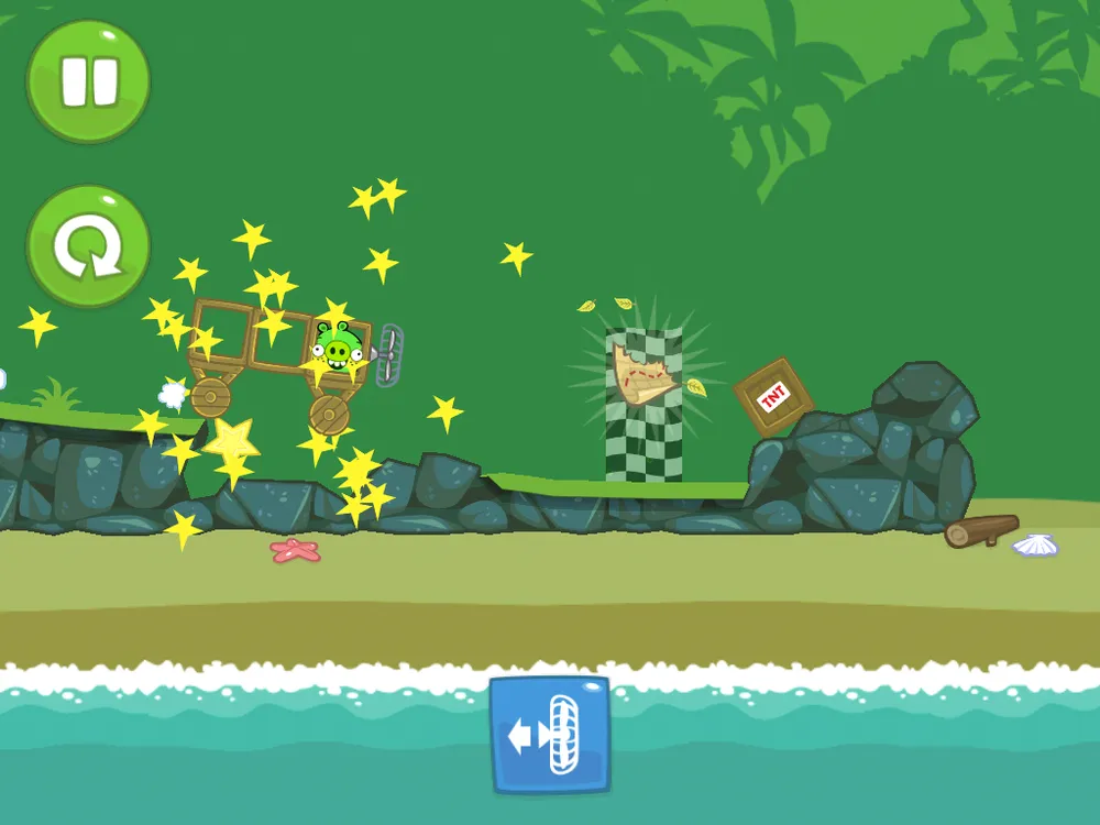 На каждом уровне наш инженер и кладовщик выдает нам пустой чертеж, всегда разного размера, в ячейки которого мы должны поместить выданные им же детали, чтобы собрать адскую машину, способную доставить одного из подданных его величества к обнаруженному кусочку карты. Пилоту нельзя отвлекаться, ведь на пути к каждому кусочку карты стоят разные препятствия: добраться за отведенное время, не разбить транспорт, не убиться самому, собрать звездные ящики и так далее в различных комбинациях. Инженер же при постройке пилотируемого объекта должен учитывать, что и в нашем мире существует хрюзика. В смысле, физика. И каждый объект подвержен ее влиянию и имеет свои вес, инерцию и запас прочности. Все как у ненавистных Angry Birds, только нынешнее поколение собратьев-свинок покрепче на голову, а пилот иногда может и сам докатиться до финиша.