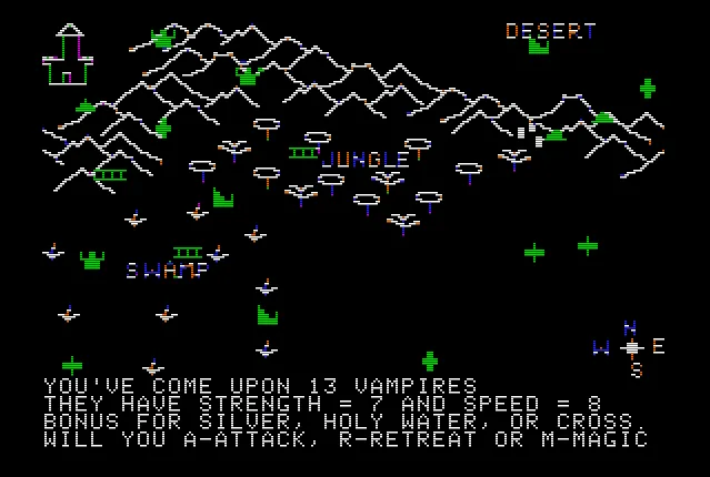Боевая механика была довольно проста. Встретив монстра, игрок мог атаковать, толкнуть, парировать или выстрелить из лука. Перемещение и атаки расходовали усталость (Fatique), а вместо хит-поинтов отображался уровень ранений (Wounds). Дополнительные способности позволяли искать ловушки и скрытые двери, пить зелья, а также уговаривать монстров вас пропустить.
