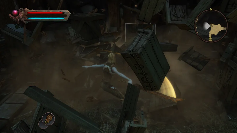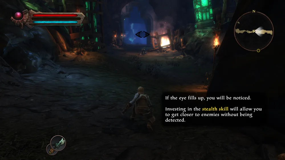 Практически любая РПГ начинается с того, что перс тащит в свой инвентарь всё, что видит. Именно этим и займёмся, ведь с близлежащего жмура можно подобрать меч. Меч ржавый, но тем, кто восстал из мёртвых с голыми руками, выбирать не приходится. Игра приветливо подсвечивает всё, что можно взять.