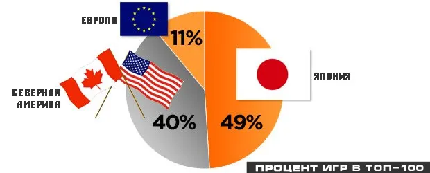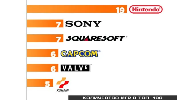 Самой популярной платформой был и остается ПК. На втором месте Sony Playstation 2 и уже за ними идут Sega, Xbox и прочая дребедень. Nintendo Wii в топе и не пахнет. Любимой компанией стала Nintendo (помним, что самые крутые разработчики — японцы, так что все окей). Вообще, в топ-6 компаний лишь одна не является японской, это Valve. Такие монстры, как Blizzard и EA вообще не удостоились этой чести.