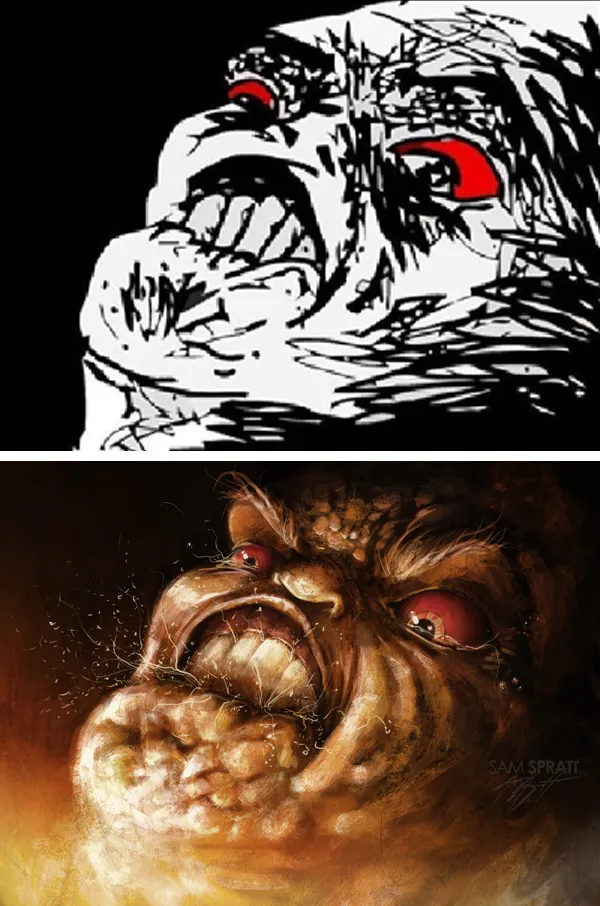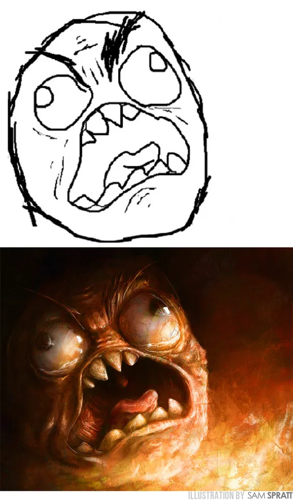 Известный на западе художник Сэм Спрэтт создал серию своих рисунков, где распространенные в интернете "Meme Faces" проработаны очень детализировано. Отличительным свойством картинок является то, что автор еще и добавляет свои детали, на которых нету даже намека в оригинале. Ничего сверх красивого его рисунки не составляют, вполне обычные работы. Однако, в них есть что-то приятное, что заставляет улыбнуться. Работы вполне заслуживают быть «порванными на юзерпики». Данные картинки можно поставить на аватар (а точнее нижнюю их часть), и будет приятно, а главное забавно выглядеть.