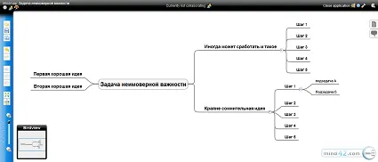 По этой причине давно появилось множество приложений, ориентированных на создание таких карт. Их выбор достаточно широк, но у них есть один общий недостаток. Для того чтобы показать кому-то созданные вами схемы, необходимо заранее побеспокоиться о том, чтобы экспортировать эти карты в какой-нибудь общеупотребительный формат и разослать его нужным вам людям. В отличие от настольных приложений, веб-сервисы для создания ментальных карт лишены такого недостатка.