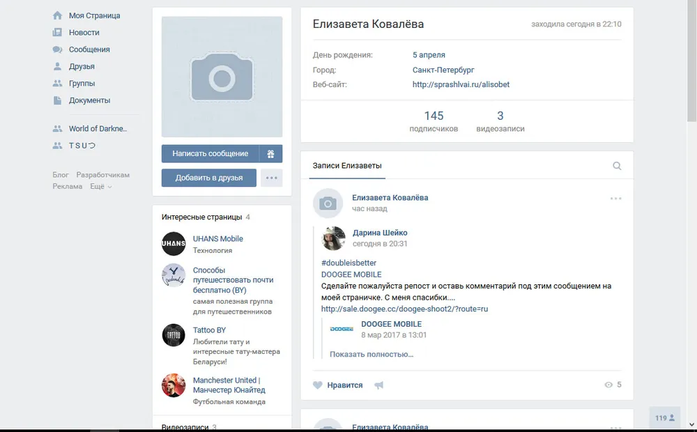 Разобрав её стену и репосты можно найти несколько интересных страниц. Первые просто однодневки, вторые имеют явную связь.