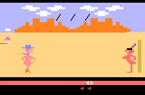 Custer's Revengeдля приставки Atari 2600 (1982). Главны герой игры - обнаженный шериф Кастер, который должен увернуться от вражеских стрел лишь для того, чтобы дойти до не менее обнаженной и очень грудастой американки по имени "Месть" на другом конце экрана. Занятный факт: в то время стоимость игры была 50$. Да, раньше женжское тело ценилось гораздо больше... Кстати, продажа игры была запрещена во многих американских магазинах!