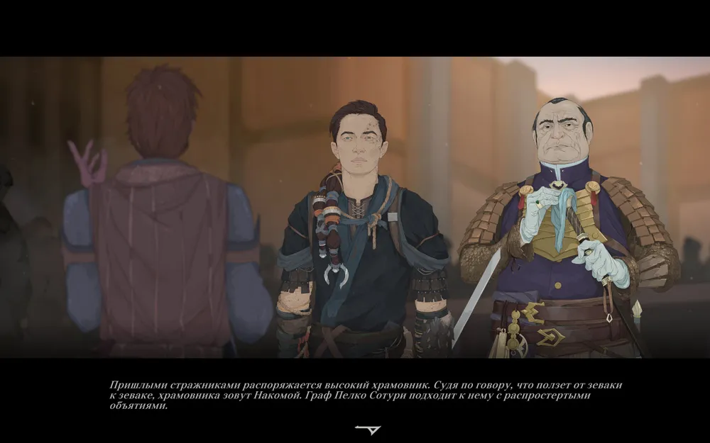 Кажется, я все больше влюбляюсь в жанр визуальных новелл, хоть и не был никогда сторонников комиксов. Должно быть, все дело в детально прорисованных персонажах и обилии диалогов. Но все же должен с сожалением отметить, что и в Ash of Gods: Redemption персонажи не имеют характеристик и умений завязанных на диалогах. С другой стороны, игра реагирует на ряд ваших поступков, что прежде всего помечены пером. К примеру покупка подарка в самом начале игры может спасти жизнь одному из ваших соратников через пару глав. К слову о ваших соратниках, на этот раз вам не придется возглавлять огромных караванов с беженцами, лишь небольшой конный отряд. Никаких иллюзий о средневековье, пешему там не выжить, особенно во время чумы. А ведь именно о таком времени и повествует сюжет. Пусть чума и носит мистический оттенок, но проблемы создает те же самые. Болезнь порождает войну, хаос и разбой, а вот атмосферы отчаянья я не уловил. Возможно, все дело в уровне заражения. Да, тут есть и такой. К слову сказать, он также зависит от решений игрока.