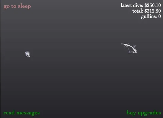 Совершенно крышесносящая игра с отличной идеей. Играем мы за дайвера (ваш кэп), который каждый день отправляется исследовать глубины океана. Вроде бы там и смотреть не на что - ну рыбы и рыбы, да еще изредка получается найти сообщения из дневника. Но затягивает ведь! Да и не припомню я подобных флешек. Отрисовка поначалу повергает в шок - ну где вы видели таких рыб, состоящих из двух линий, а? Но потом как-то привыкаешь, да и интересно там, под водой. Ищешь все новых рыб, зарабатываешь на апгрейды, смотришь по ночам кошмары (про рыб, естественно)... И самое-самое, что мне понравилось в этой игре - полное отсутствие звуков на поверхности и музыка под водой. Что-то в этом есть, даже не знаю как объяснить. Больше, в общем-то, и сказать нечего, слишком необычная игра.