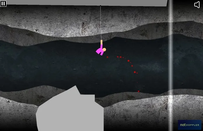 Хм...что-то я не с того начал, надо было сначала сказать о геймплее. Играем мы за человека-паука парня с крюком на руке. Всё. Есть только мы, крюк, препятствия и финиш. Как говорится,"easy to play hard to master". Ах да, уровни тут поначалу кажутся однообразными, но это не так. Вскоре после начала появится, например, уровень, на котором мы будем видеть только маленький кусок уровня вокруг себя, все остальное скрывать тьма. Так что не все так уж и плохо.
