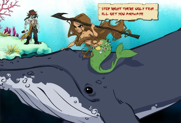 Персонажи тут тоже довольно необычные, чего только стоит наша ручная пиранья, предпочитающая наши сапоги любому другому лакомству, или команда, которая не признает капитана без шляпы (и правда, какой капитан без шляпы-то?). Но этот плюс перекрывает еще один минус - однообразная до зубовного скрежета музыка. Загадки довольно логичны (настолько, насколько могут быть логичны загадки о мертвых пиратах, конечно), хотя их тут не так уж и много и они достаточно легкие.