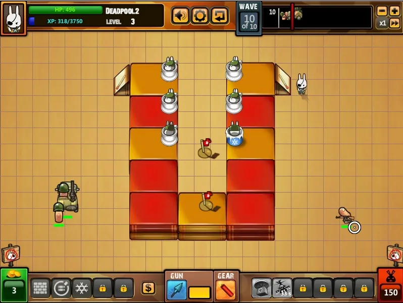 Надеюсь, вы еще не устали от жанра Tower defence, все-таки игр этого жанра в последнее время ну очень много, причем даже среди "больших" игр. Bunny flags 2 - не исключение, но это не совсем типичный TD, тут нам самим придется вступить в бой, причем наш герой будет посильнее некоторых башен.