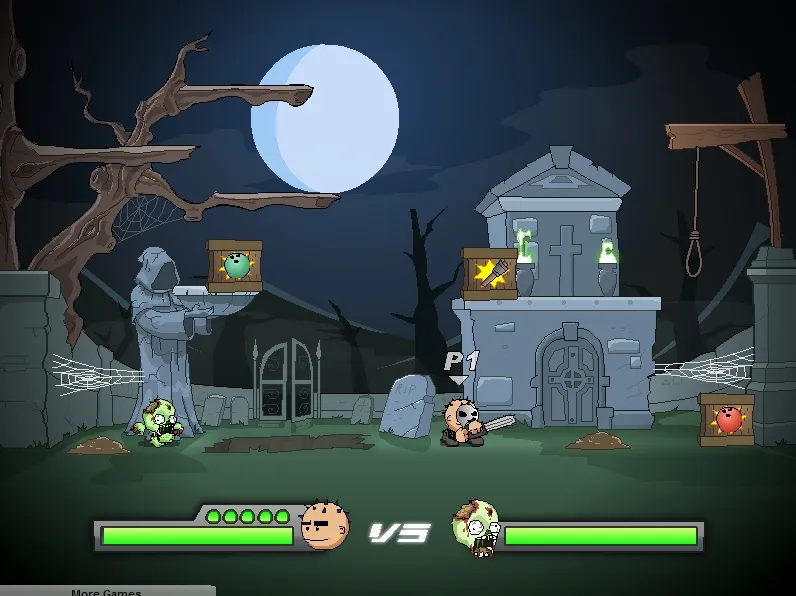 Одна из моих любимых флеш-игр, уже довольно старенькая, но не показать ее было бы преступлением. Жанр тут определить достаточно сложно, но больше всего эта игра мне напоминает Super Smash Bros. Brawl, те же драки на 4 человека (ну ладно, в данном случае человека и 3 ботов), точно так же тут легче выкинуть противника за пределы поля боя, чем снять все жизни.