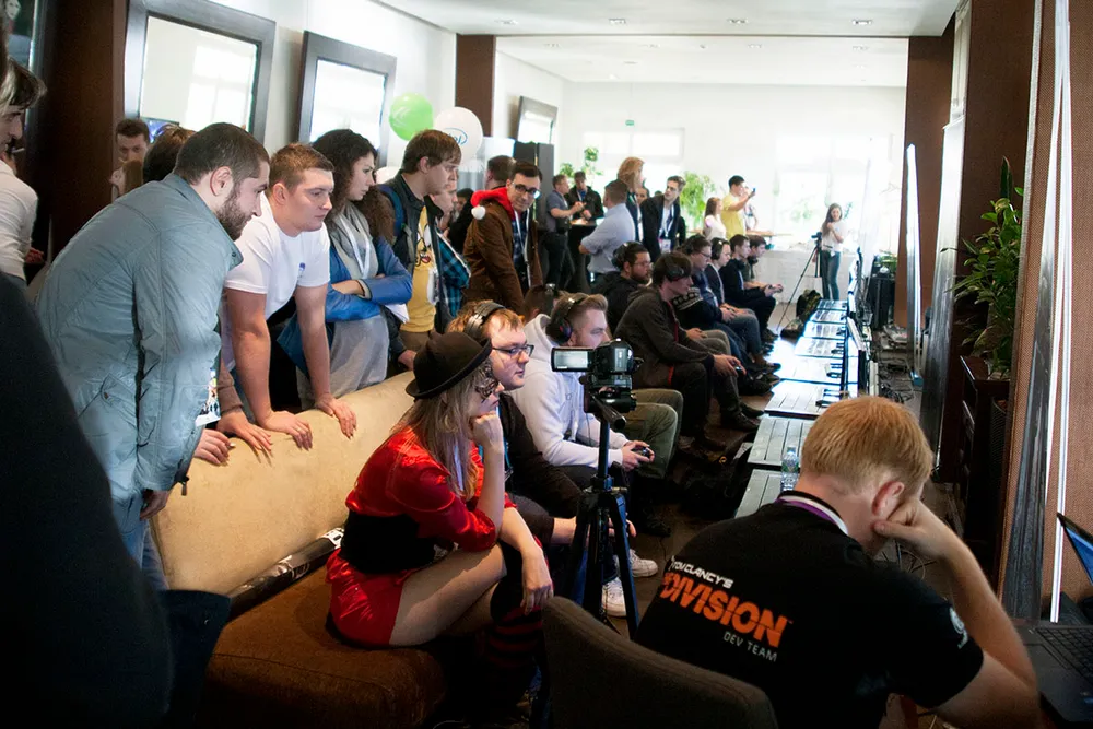 На этом наше время посещения драматически истекло. Отстоять очередь к Assasin's Creed, который только ленивый из моих знакомых не раскритиковал заранее, мы не смогли - самый популярный стенд оказался. Впрочем, я уверена, что Elle не пропустила "Синдикат" во время своего посещения выставки и в красках опишет демо-миссию. Tom Clancy’s The Division я тоже пропустила и тоже из-за нехватки времени. Зато сняла классное фото играющих.