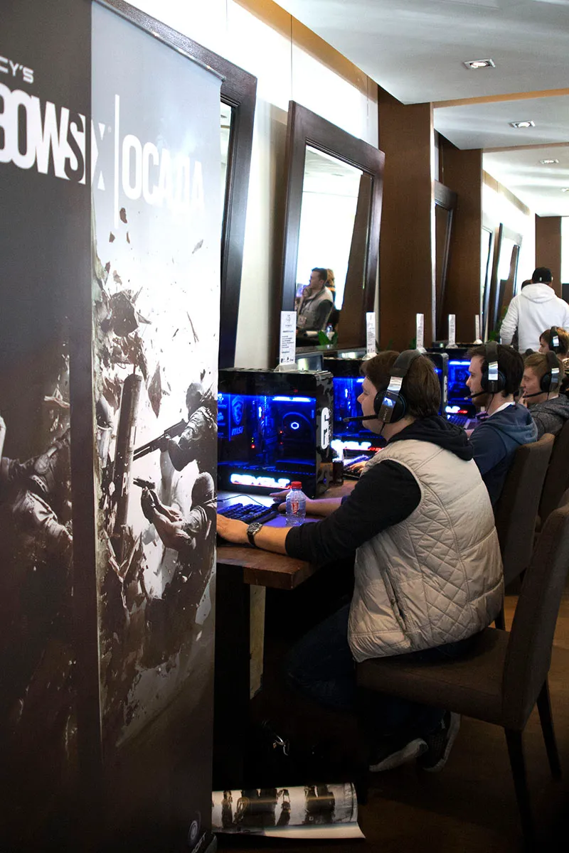 Следующее свободное место оказалось за столом Tom Clancy’s Rainbow . Всего стояло десять компьютеров, соответственно разбито на два команды по пять человек. В целом игроки периодически менялись, так что начала я не с самого первого раунда. Нужно было отыскать заложника в здании или, наоборот, защить его от противников, затем команды менялись