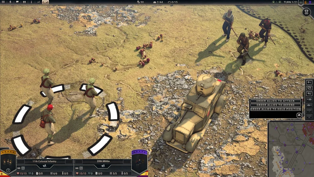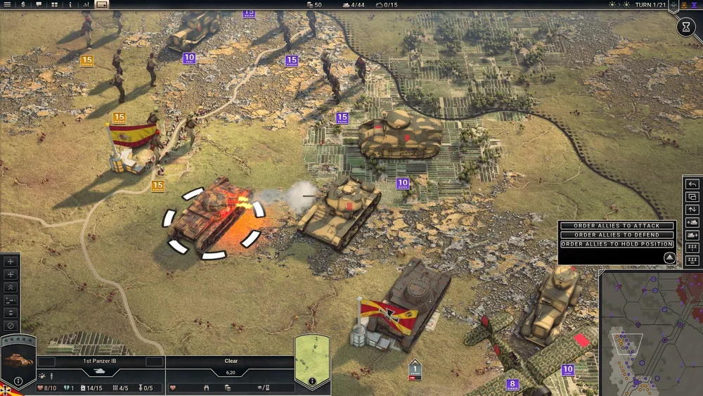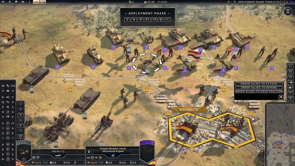 Ключ к победе - координация действий между игроком, управляющим танками, артиллерией и воздушными силами и ИИ, управляющим всей пехотой националистов.