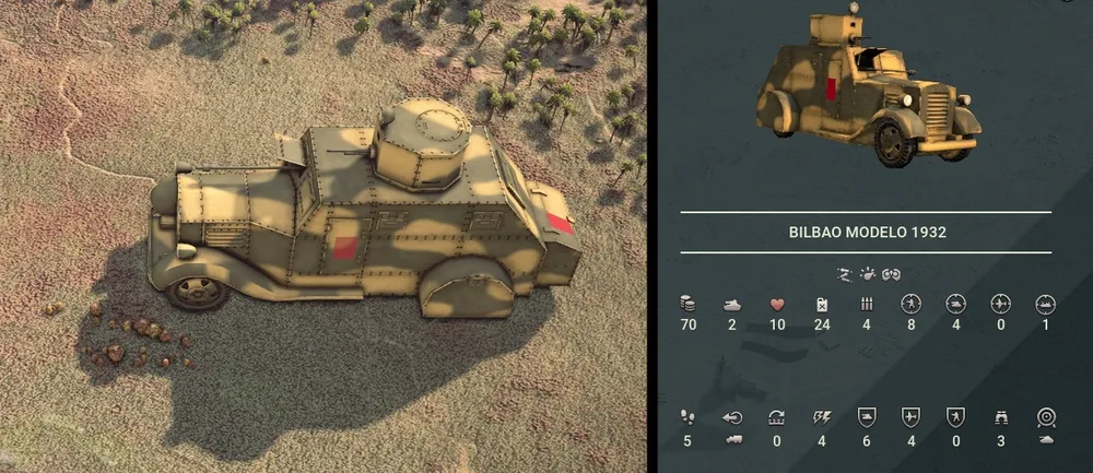 Одна из бронемашин, участвующих в кампании. Устаревший Бильбао будет постоянной, но не слишком опасной угрозой на поле боя, часто появляясь в ранние годы Гражданской.