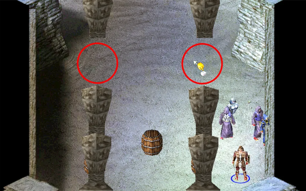 Часть бочек не отображается на экране, но пытливому искателю не составит труда обнаружить их. Также поищите их под колонами на юге.