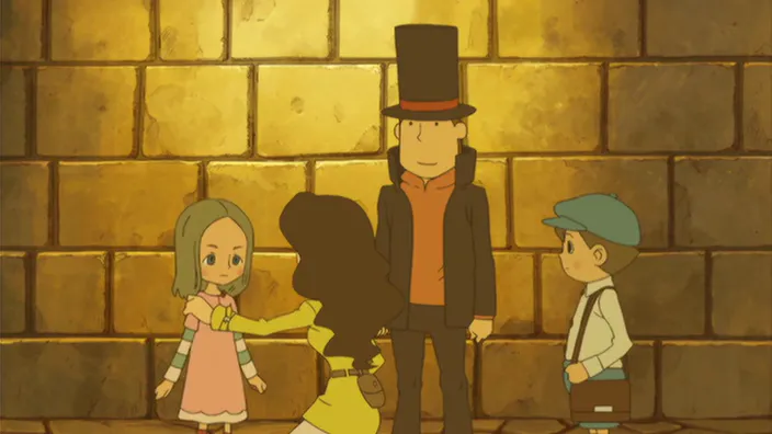Вообще сюжет очень даже неплох, хорошо подаётся, не напрягает и довольно интересен. Подводит только концовка, но она всё таки на любителя. Сразу скажу ни в одну игру данного творчества я не играл да и видел маловато, но тем не менее смотреть за действиями героев интересно, да и сам профессор Лейтон производит впечатления чуток подкаченного Шерлока Холмса из последнего фильма Гая Ричи. Он может и трубой огреть, и подтянуться на тоненькой балке и в драке выстоит. А его маленький помощник, выглядит точь-в-точь как очень юный Ватсон, только без усов.