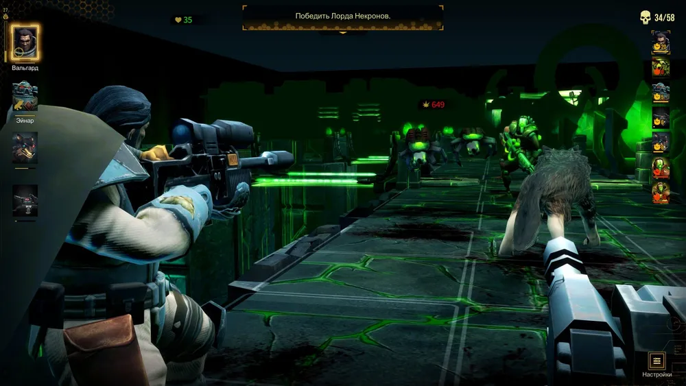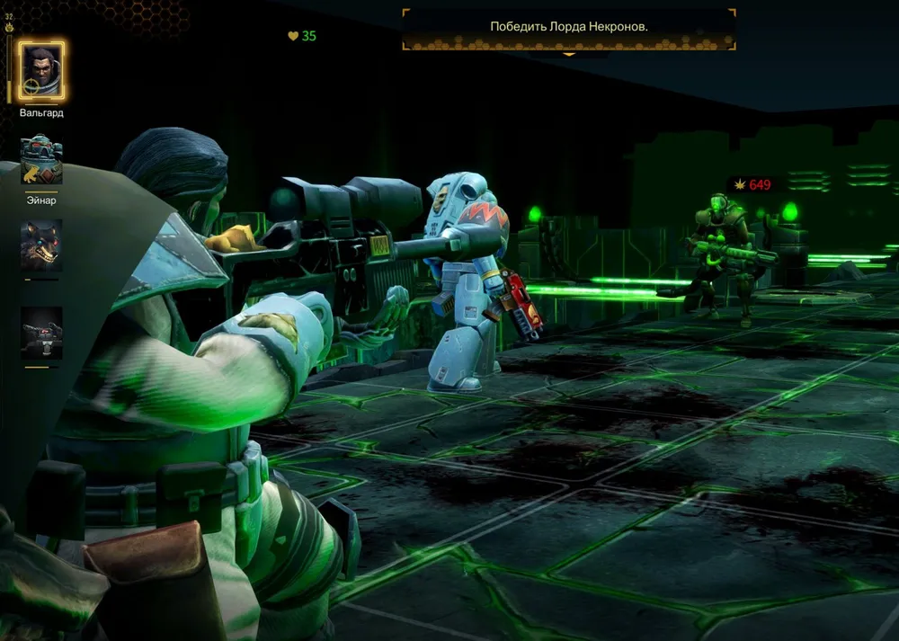 Карл со снайпером Ингваром каким-то чудом ухитрились уничтожить первых некронов, но «зависли» на жукомухах. У Вальгарда с Эйнаром дела пошли лучше: впереди волк, вплотную за ним – лазерная турель (бьёт на расстояние снайпера; откуда взялась – расскажу позже), за турелью – Эйнар (оружие с «Надзором»); справа или слева от неё – Вальгард-снайпер.