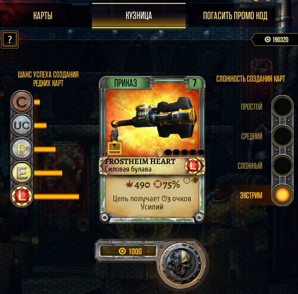 Ринулся в кузницу, и снова столкнулся с безобразнейшей системой создавания карт. В моей основной колоде двадцать две карты легендарного уровня, причём использую я двенадцать из них. Понятно, что шанс улучшить эти двенадцать – один к двум, даже меньше: карты выпадают хаотично. Но при генерации далеко не всегда выпадают карты легендарного уровня! Я просто отказываюсь понимать смысл таких действий геймдизайнеров! Двести шестьдесят тысяч золота так и не позволили довести до максимального уровня хотя бы одну из двадцати двух легендарных карт! (Правда, получил карту "Лазерная пушка".)