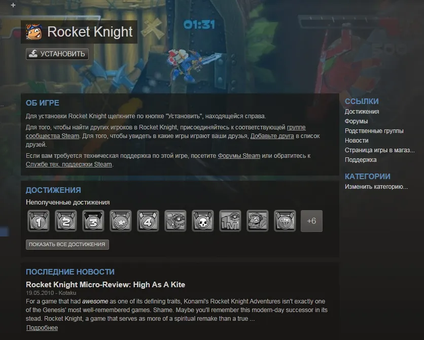 Собственно купил игру на свой аккаунт Rocket Knight, страница на товар http://store.steampowered.com/app/19030