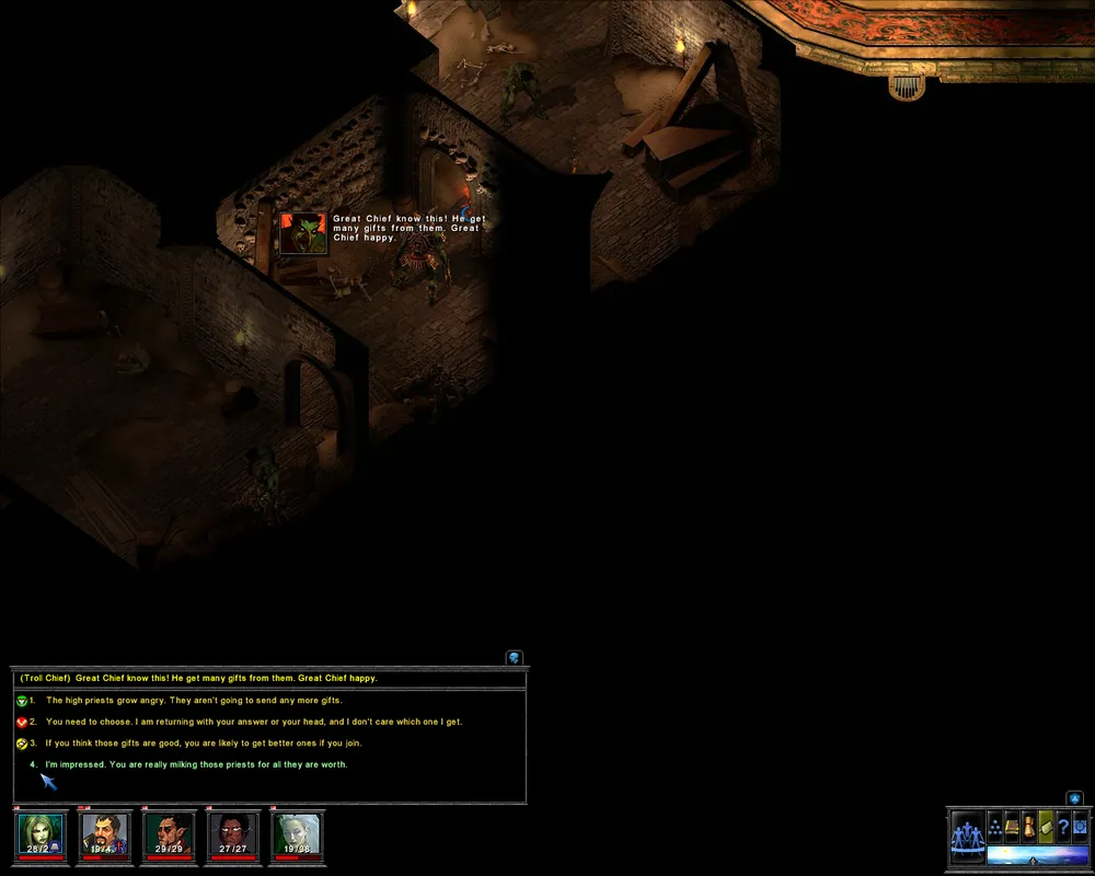 Идем по порядку, возвращаясь к теме обсуждения skills. Четыре социальных навыка (дипломатия, обман, угроза, чувство побуждения) ничем не отличаются от простого "убеждения", если их негде применить. В ToEE свои ораторские способности проявлять почти не придется – как я говорил, только в первой локации есть какие-никакие социальные квесты, в остальной части игры убеждение пригодится с пяток раз, без существенной пользы. Напомню, что это боевая ролевая игра, где основной опыт дается за убитых врагов, но не за длинный язык или выполнение квестов, поэтому социальные навыки не помогут в развитии. В Wasteland 3 тоже было несколько социальных навыков, но там это шло игре на пользу, и двойные стандарты здесь не при чем - создатели почти в каждый клочок игры добавили возможность их задействовать и получать награду за применение.