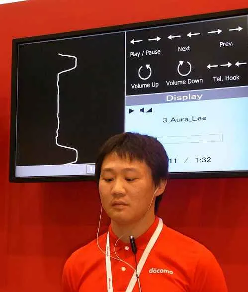 В новой разработке электроды расположены вокруг динамиков, и регистрация движения происходит через изменение напряжения на них. Согласно DoCoMo, соотношение сигнал/шум снижено до 95% по сравнению с методом крепления электродов вокруг глаз, а сигнальная вычислительная система усовершенствована. В ходе демонстрации, когда глаза двигались справа налево, плеер включал музыку (и оставался на паузе после окончания композиции). Два раза вправо – и следующий трек пропускается. Вращение по часовой стрелке означает увеличение громкости. "На сей раз мы использовали ПК для обработки сигналов от наушников, - объясняет компания. – Но необходимая пропускная способность невелика, и процессора в мобильном телефоне должно быть достаточно".