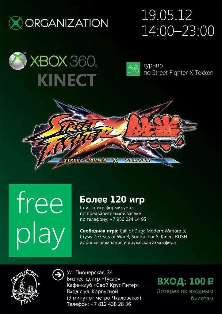 Xbox 360 Free Play 19 Мая в 14:00 в клубе "Свой Круг" Санкт-Петербург