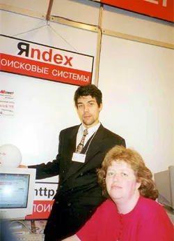 (На фотографиях: Аркадий Волож, Илья Сегалович, Елена Колмановская на выставке Softool, сентябрь 1997 года)