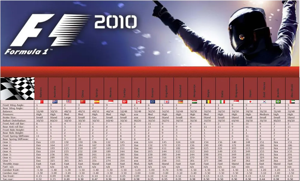 Гайд по настройке болида в F1 2010 .