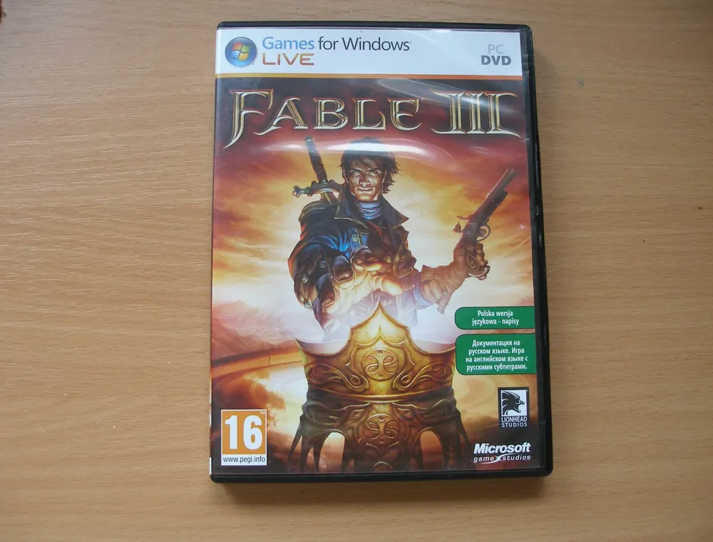 Давно я не писал постов. Вот, под настроение сделал обзор коробочки с русско-польским Fable III. Недавно приобрел за 29р. Собственно, в коробочке лежит диск и руководство