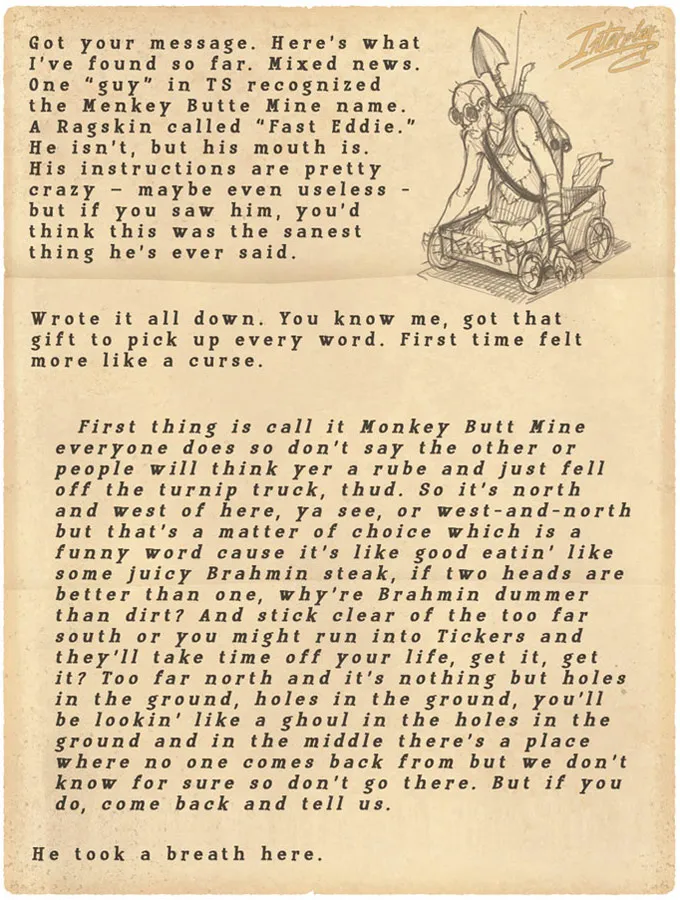 Фергюс Уркхарт: Ну, я не хочу сказать, что все делается само собой, но когда ты на Западе, люди ждут Запада. И ты просто не хочешь не Запад. И опять-таки, это весело. Я думаю, это лучшее в разработке Fallout. Это просто весело.