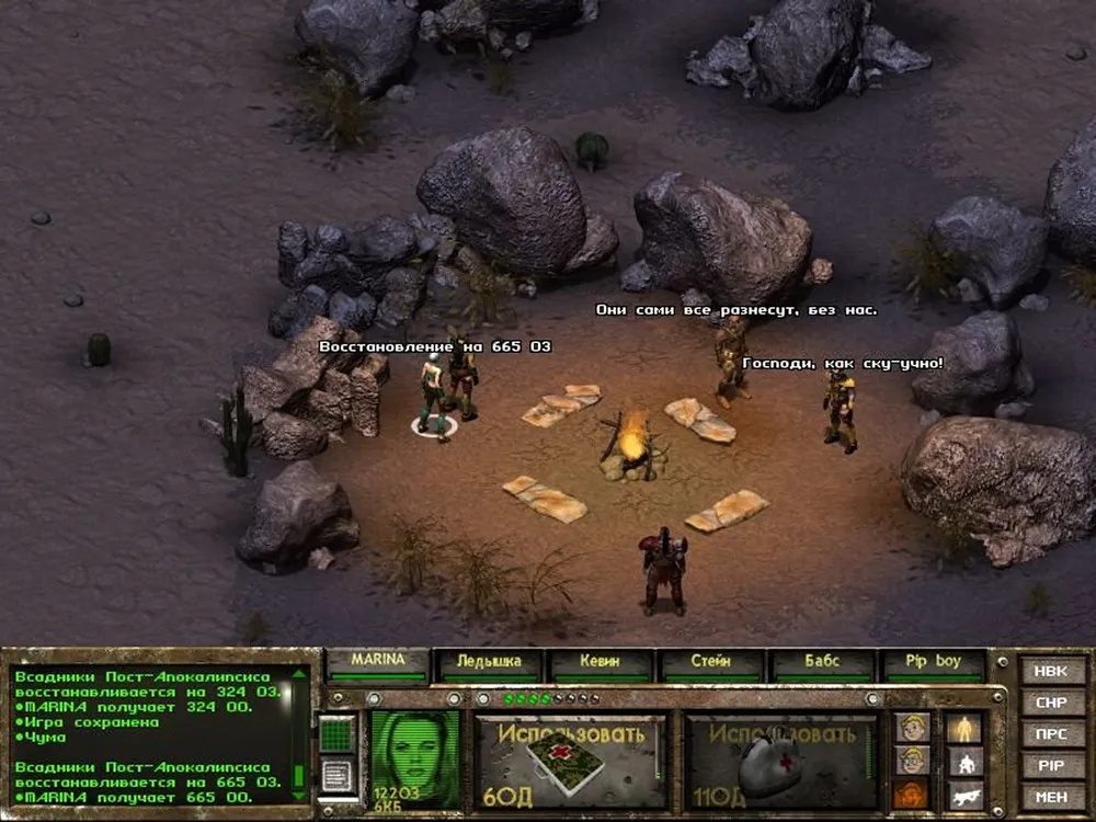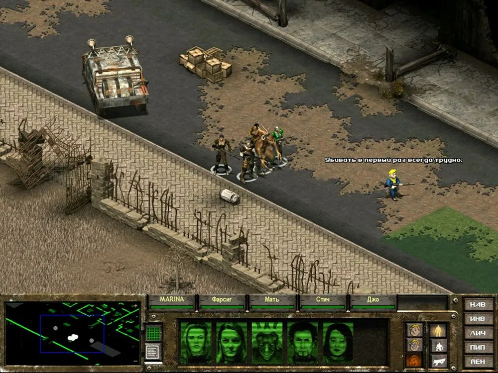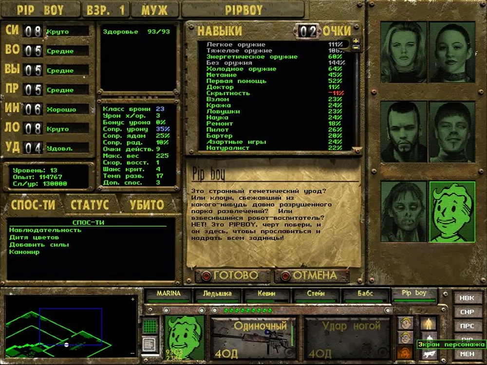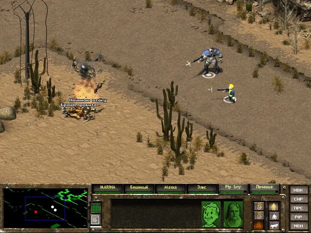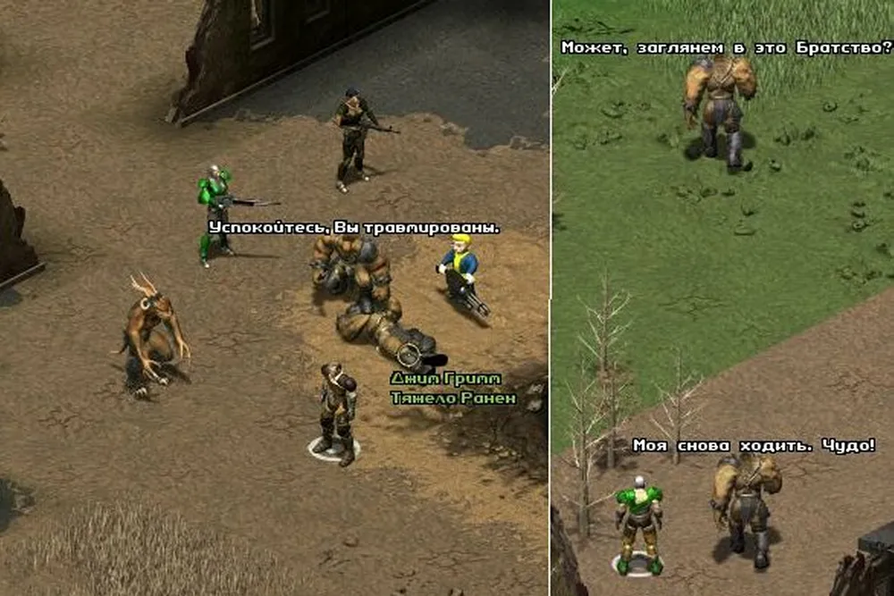 И наконец — фанфары! — Pip-Boy. Точнее, даже два. Который из них окажется у вас в отряде, зависит от количества наёмников, вас сопровождающих. Если в отряде четверо бойцов, включая главного героя, Pip-Boy вступит в отряд немедленно, прямо на локации.