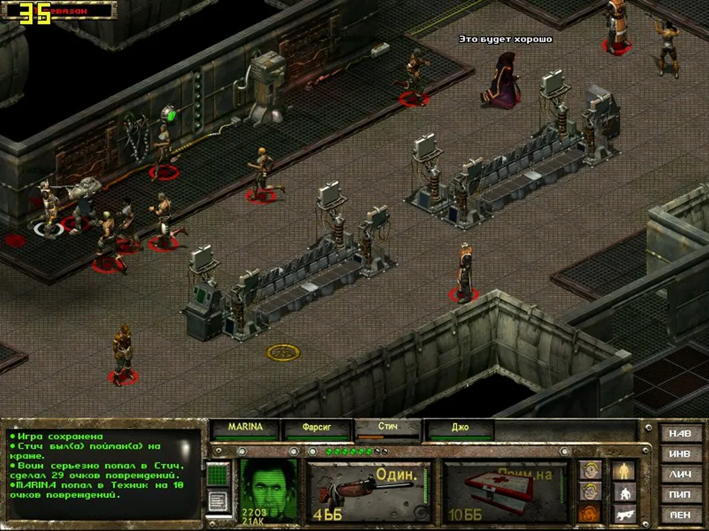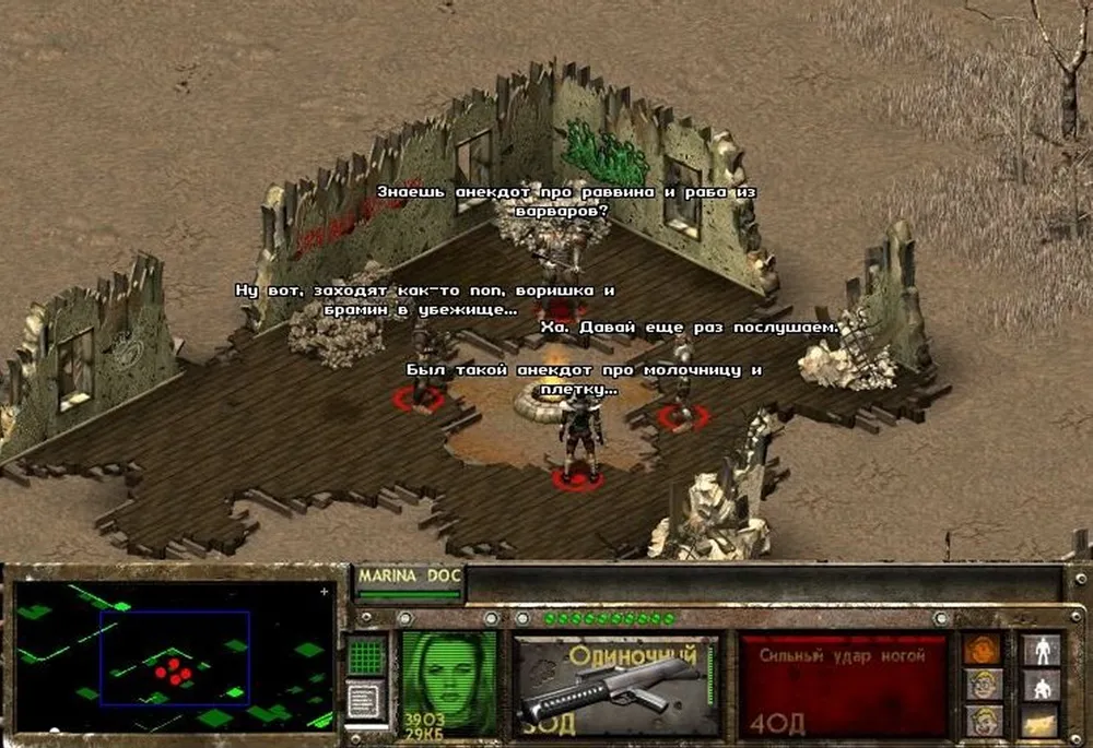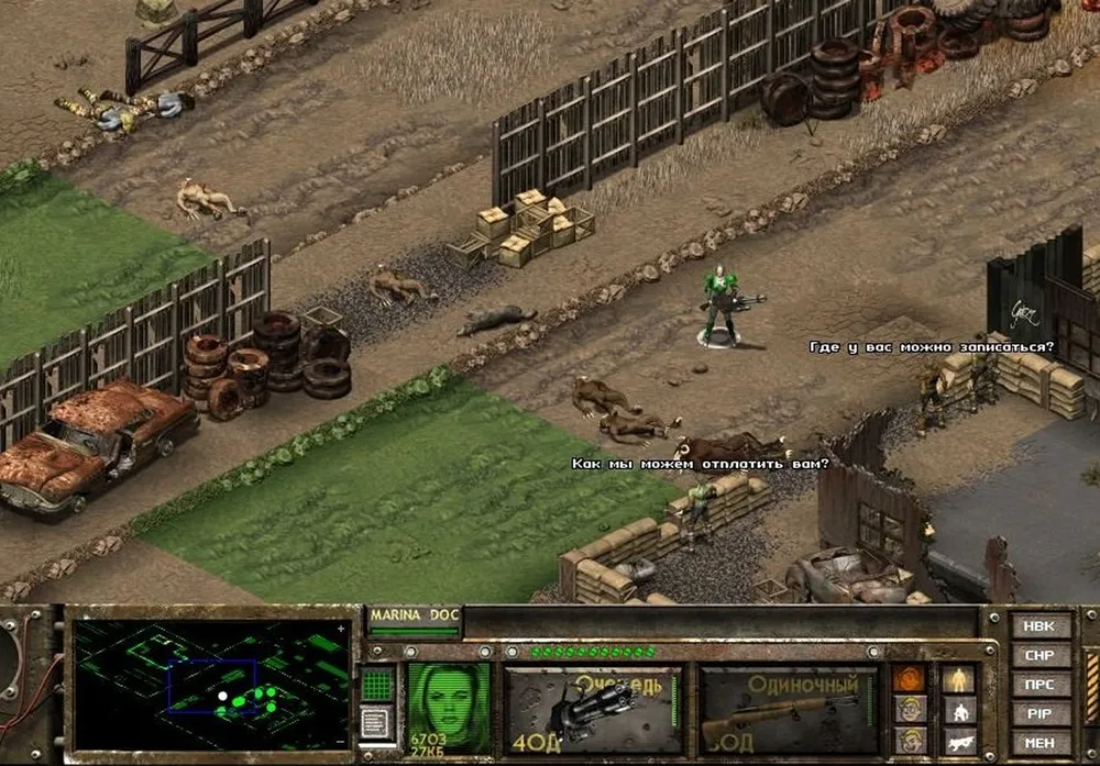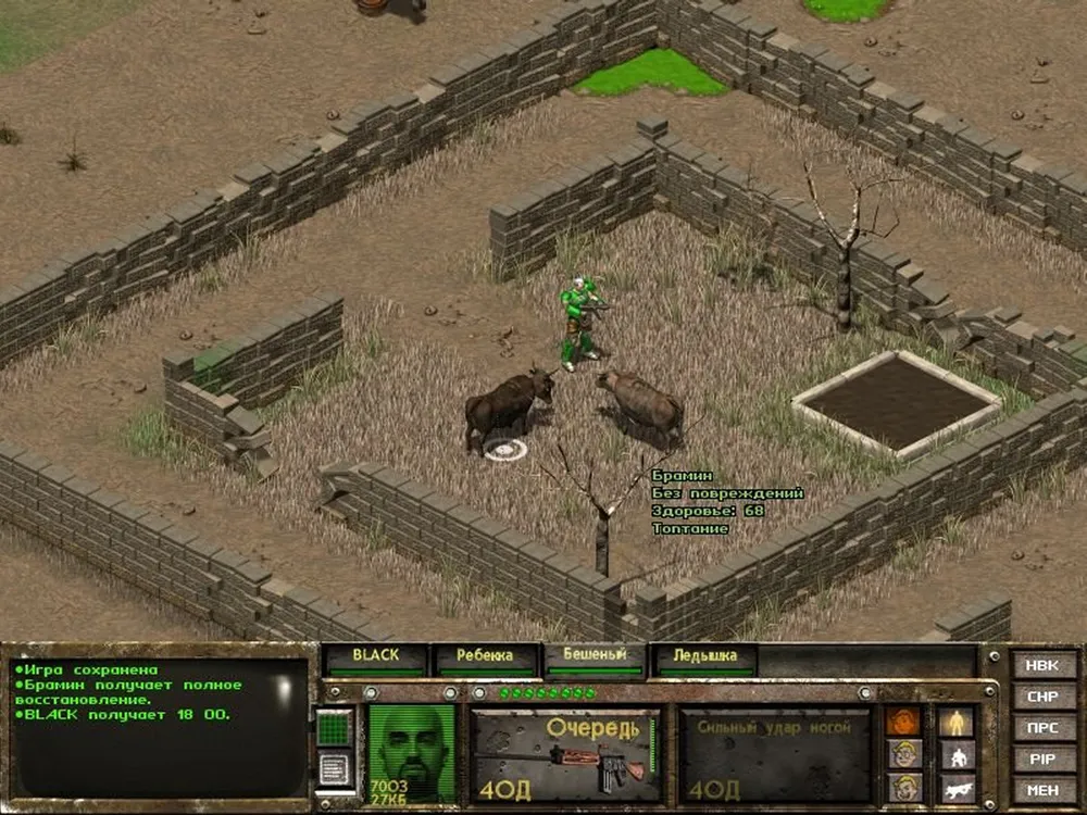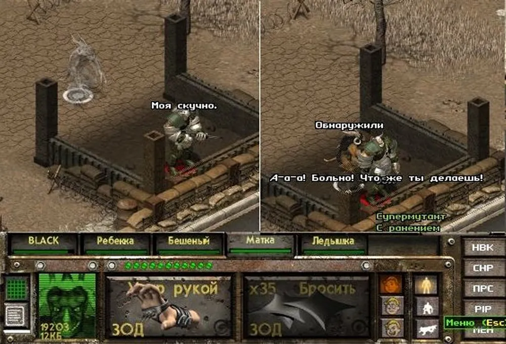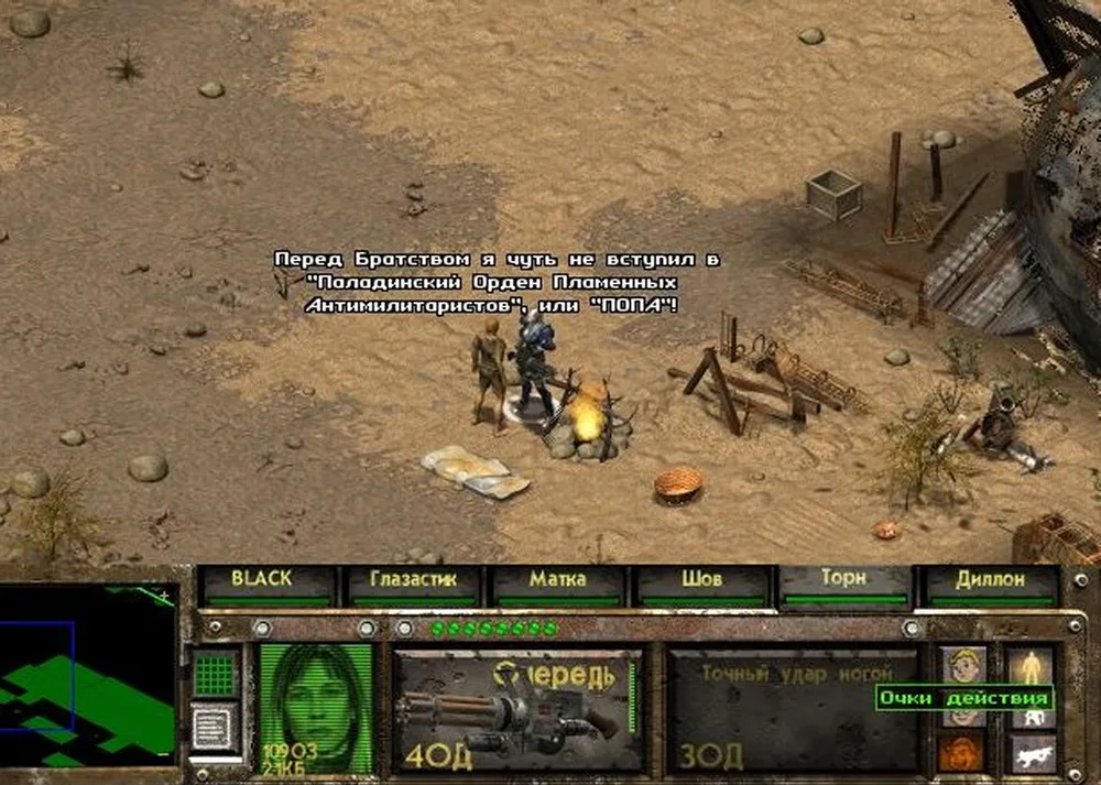 Среди наёмников в самом начале игры есть некая Торн. У неё неплохие сила, ловкость, выносливость и восприятие — идеальный кандидат в пулемётчики. Увы, её изначальная специализация — холодное оружие и бой без оружия. Берём её в отряд и начинаем накопление очков опыта и навыков, всё равно в запасе пока что нет пулемёта. При этом Торн вовсе не сидит без дела — холодное оружие в Fallout Tactics весьма эффективно.