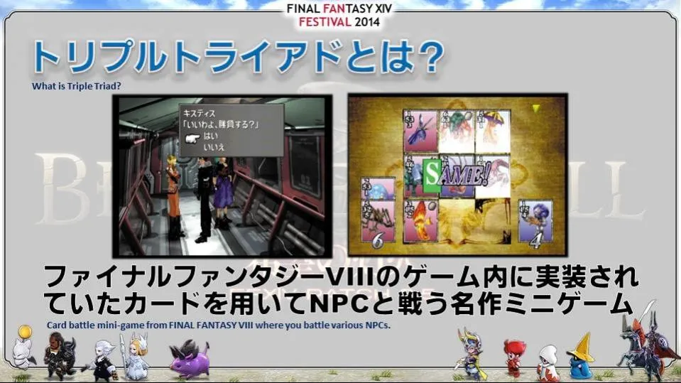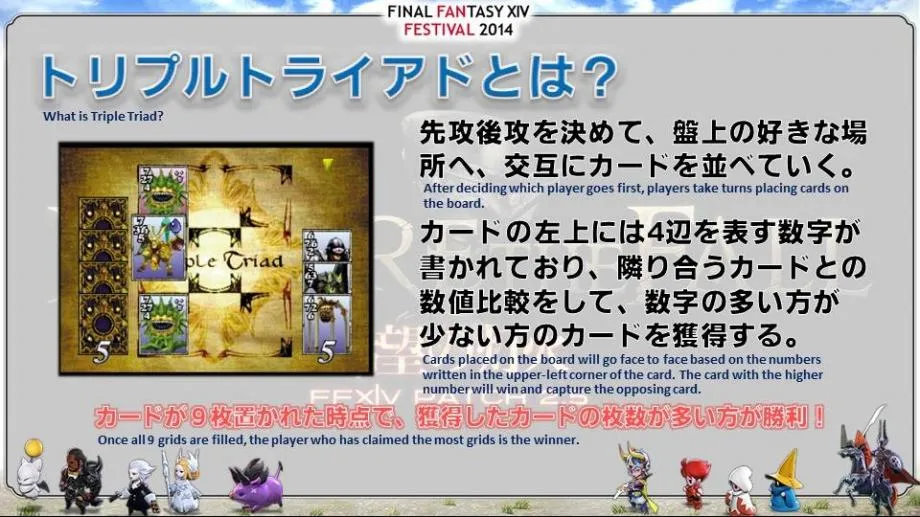 О: В GS будет проходить соревнование, где можно будет сразиться с другими игроками в игру Triple Triad. Более молодое поколение может быть не знакомо с этой игрой, поэтому я кратко опишу ее.