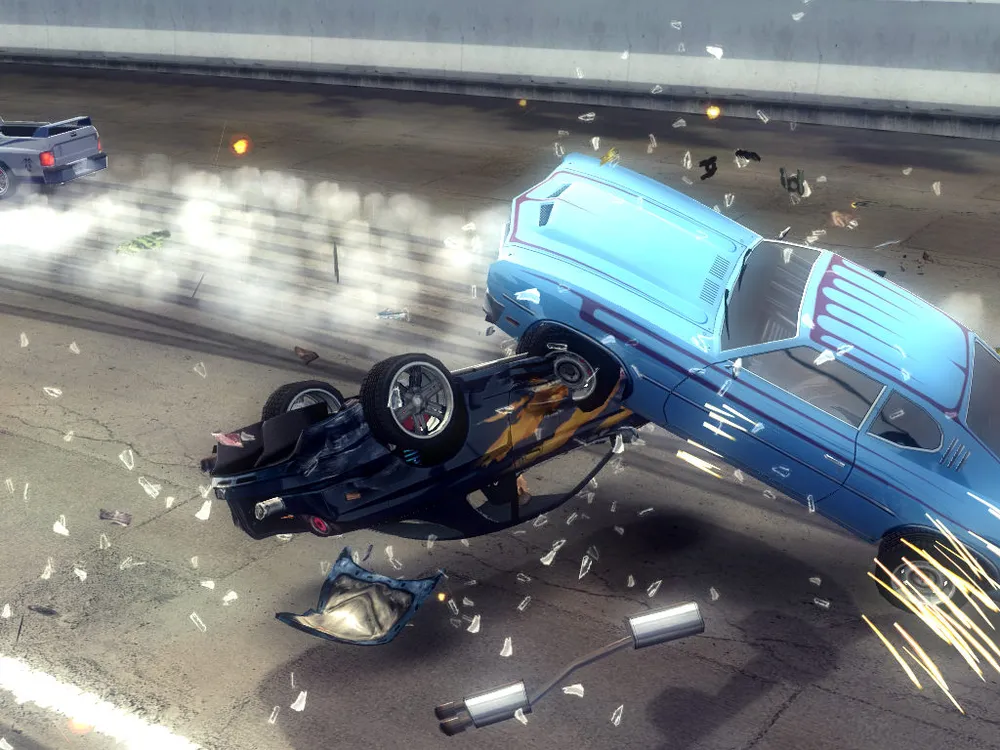 Скриншоты из игры FlatOut 2: коллекция изображений, демонстрирующих захватывающие моменты игрового процесса и графику.