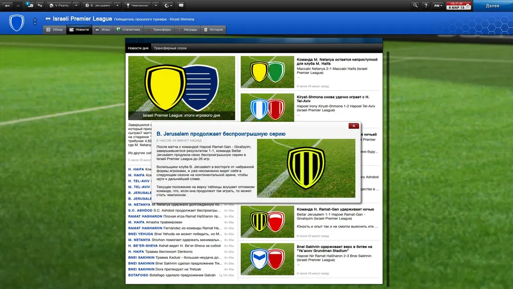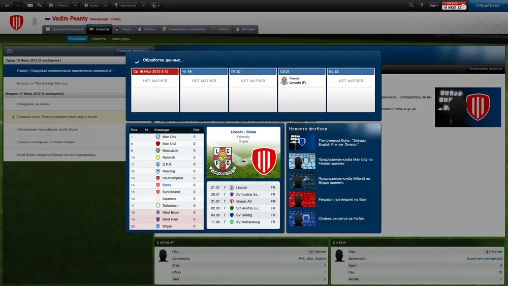 Долгое время я не мог понять, где же сама игра, но вот все эти ковыряния в показателях и параметрах – это, собственно, и есть Football Manager, точнее – его основная составляющая. Встречи между клубами происходят достаточно редко, и добраться, наконец, до футбольного поля и посмотреть на результат своей успешной (или не очень) деятельности на посту менеджера – дело далеко не из легких. Можно, конечно, пролистывать дни недели, уповая на то, что ассистенты и многочисленные помощники справятся со всеми делами самостоятельно, но... Перед матчем вдруг выясняется, что моральное состояние футболистов просто-таки ужасно, на скамейке запасных – явный недобор игроков, а на позиции нападающего почему-то стоит полузащитник. Люди, находящиеся в подчинении генерального менеджера (разнообразие должностей со времен FM 2012 несколько увеличилось) не всесильны, и подчас они лишь предлагают те или иные варианты решений, которые затем прилежно исполняют. Ну а то, что менеджер, к примеру, решил взять вместо хорошего тренера плохого и ленивого засранца из второсортного клуба – это проблемы самого менеджера.