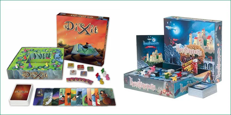 В отличие от подвижно-физкультурного Twister'а, Dixit и его коллега Имаджинариум обращаются к воображению и ассоциациям. Концепция игры довольно проста: вам нужно придумывать ассоциации к психоделическим картинкам, но так, чтобы другие игроки (но не все, это важно!) могли их угадать. Глядя на некоторые из картинок, Сальвадор Дали повесился бы на своих усах. Зато в чем игре точно нельзя отказать, так это в развитии творческого мышления.