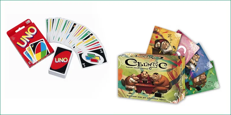 Еще один завсегдатай вечеринок – это Uno, хотя лично мне больше импонирует его свинский коллега. Суть игры проста как валенок: вовремя выбрасывать карты того же цвета и номинала. А также пережидать молчанки, кидаться подставами в друзей, переводить ходы и даже забирать себе чужие карты. Бодро, весело, динамично и просто. Сыграем?