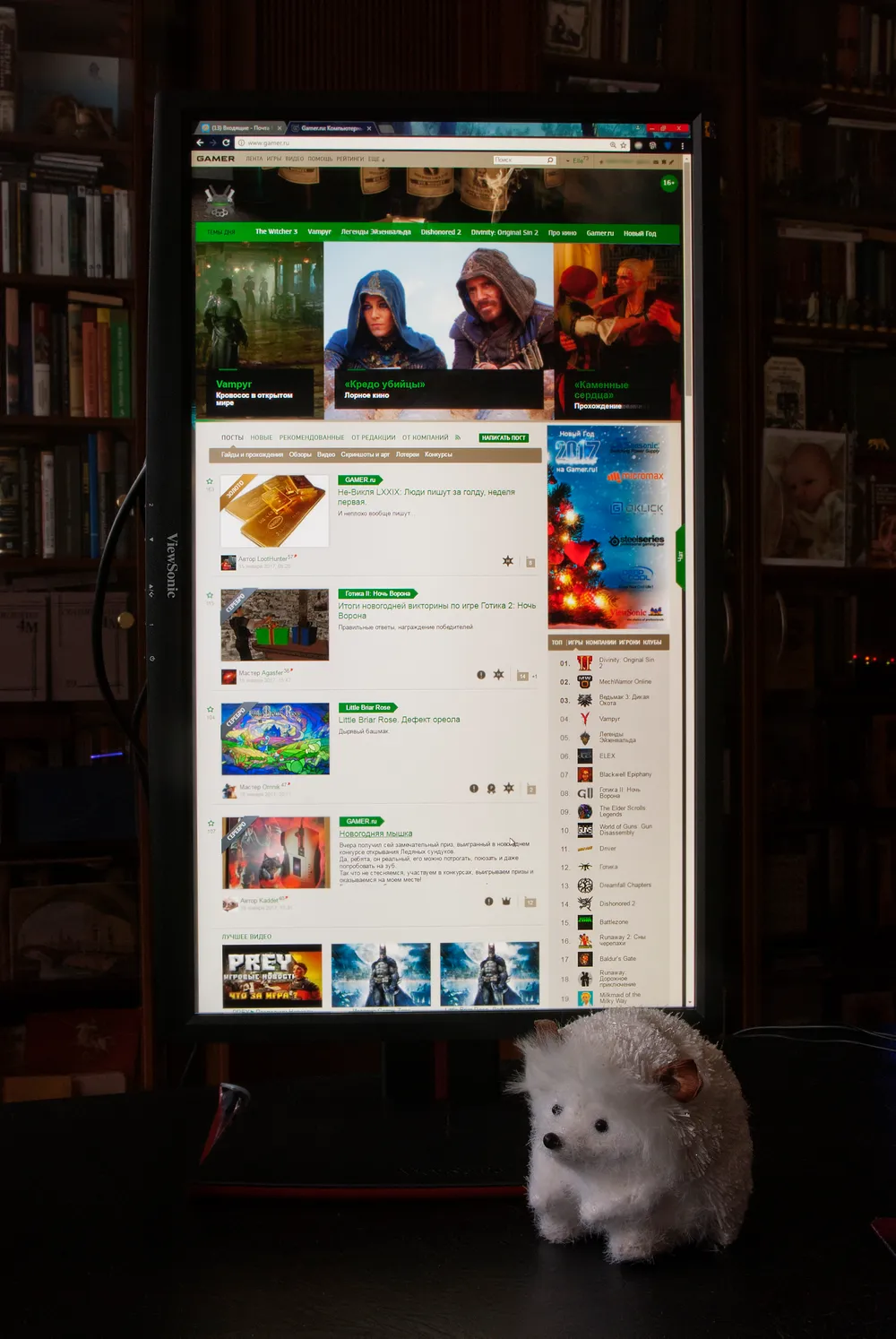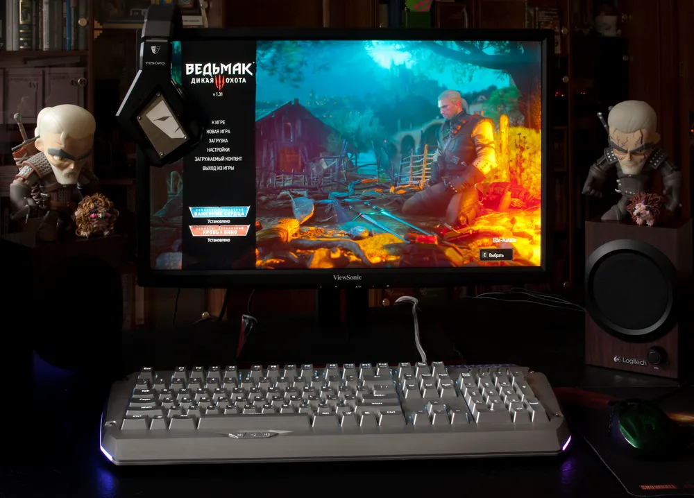 Чудесный монитор в тот же вечер занял свое место на моем рабочем столе, пополнив собой коллекцию девайсов, выигранных на Gamer.ru в прежние годы (эх, верните мне мои конкурсы, верните мне мой 2013) – клавиатурку и гарнитурку от Tesoro.
