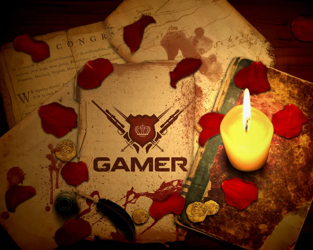 Делал обрину для одной игры, слава сохранил PSD файл. Дальше вставил лого gamer.ru в исходник, обработал и сделал освещение! Некий средневековый аналог.